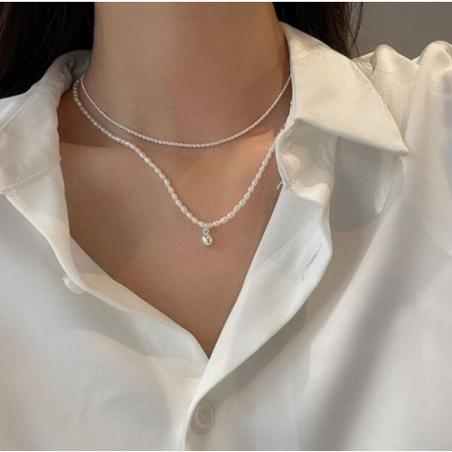 925 실버 걸리쉬 담수펄 실버볼 더블 체인 은목걸이 925목걸이 실버목걸이 네크리스 진주목걸이 > 액세/쥬얼리