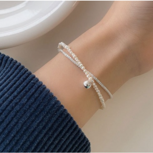 • 925 실버 걸리쉬 담수펄 실버볼 더블 체인 팔찌