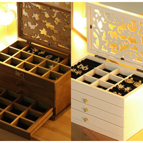 자연스러운 원목 소재로 만들어져 고급스러운 느낌을 주며, 어떤 인테리어와도 잘 어울립니다. 다양한 크기의 보석을 수납할 수 있는 공간이 마련되어 있어, 귀걸이, 목걸이, 반지 등을 깔끔하게 정리할 수 있고 분리된 칸이 있어 서로 엉키지 않아 편리합니다.