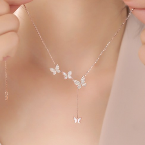 여성용 14K 나비 목걸이 로즈골드 패션 목걸이 데일리 여자친구 금목걸이 > 액세/쥬얼리